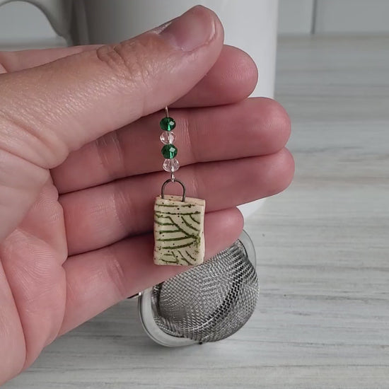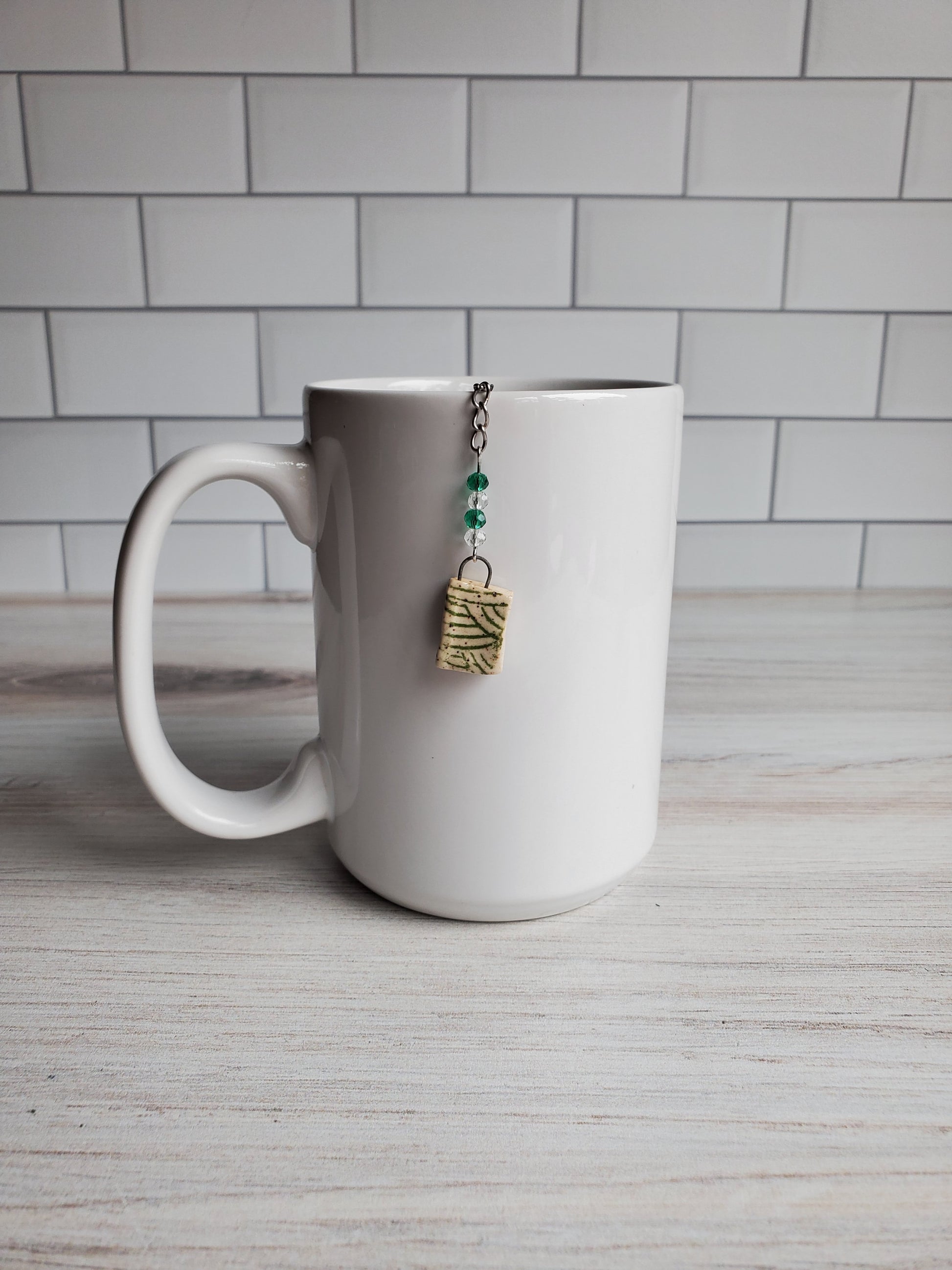 Book-Shaped Pottery Tea Infuser Charm with wave accent - a grounding gift for book and tea lovers alike. Elevate your tea ritual with one of our adorable tea infusers. Handmade pottery charms made from midfire speckled stoneware with an accent of colorful crystals, this infuser is sure to impress. So sit back, grab a book, relax, and enjoy your favorite loose-leaf tea.
