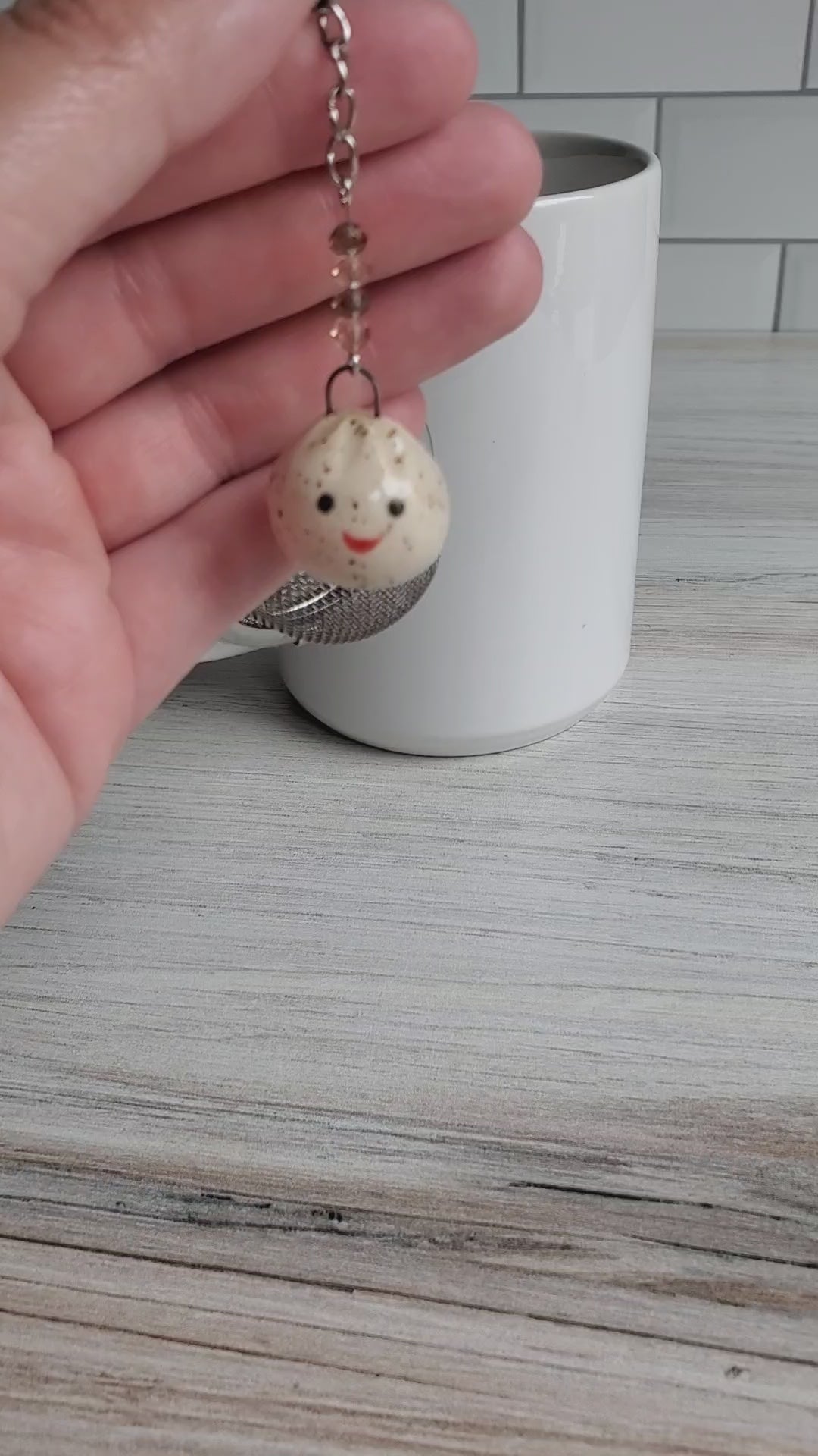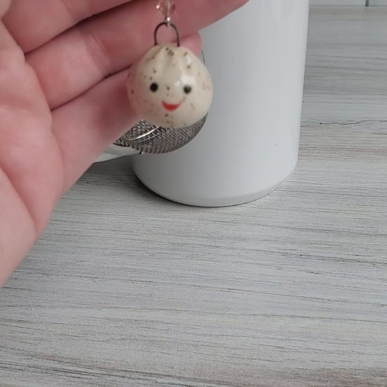 Dumpling-Shaped Pottery Tea Infuser Charm- a beautiful gift for a tea lover. Elevate your tea ritual with one of our adorable tea infusers. Handmade pottery charms made from midfire speckled stoneware with an accent of colorful crystals, this infuser is sure to impress. So sit back, grab a book, relax, and enjoy your favorite loose-leaf tea.