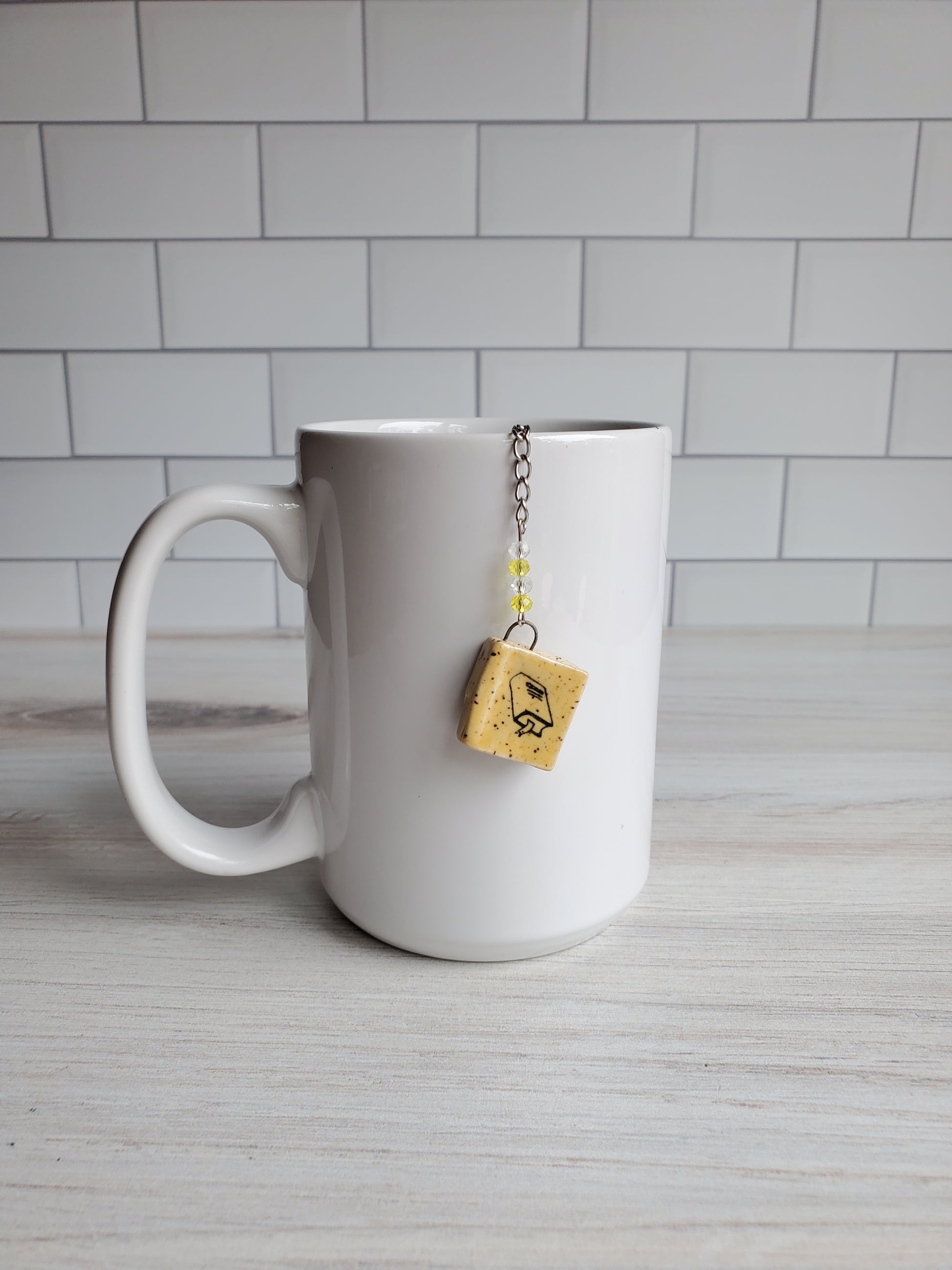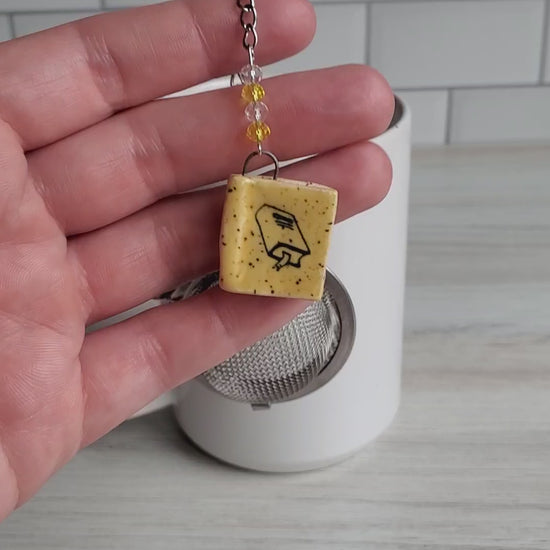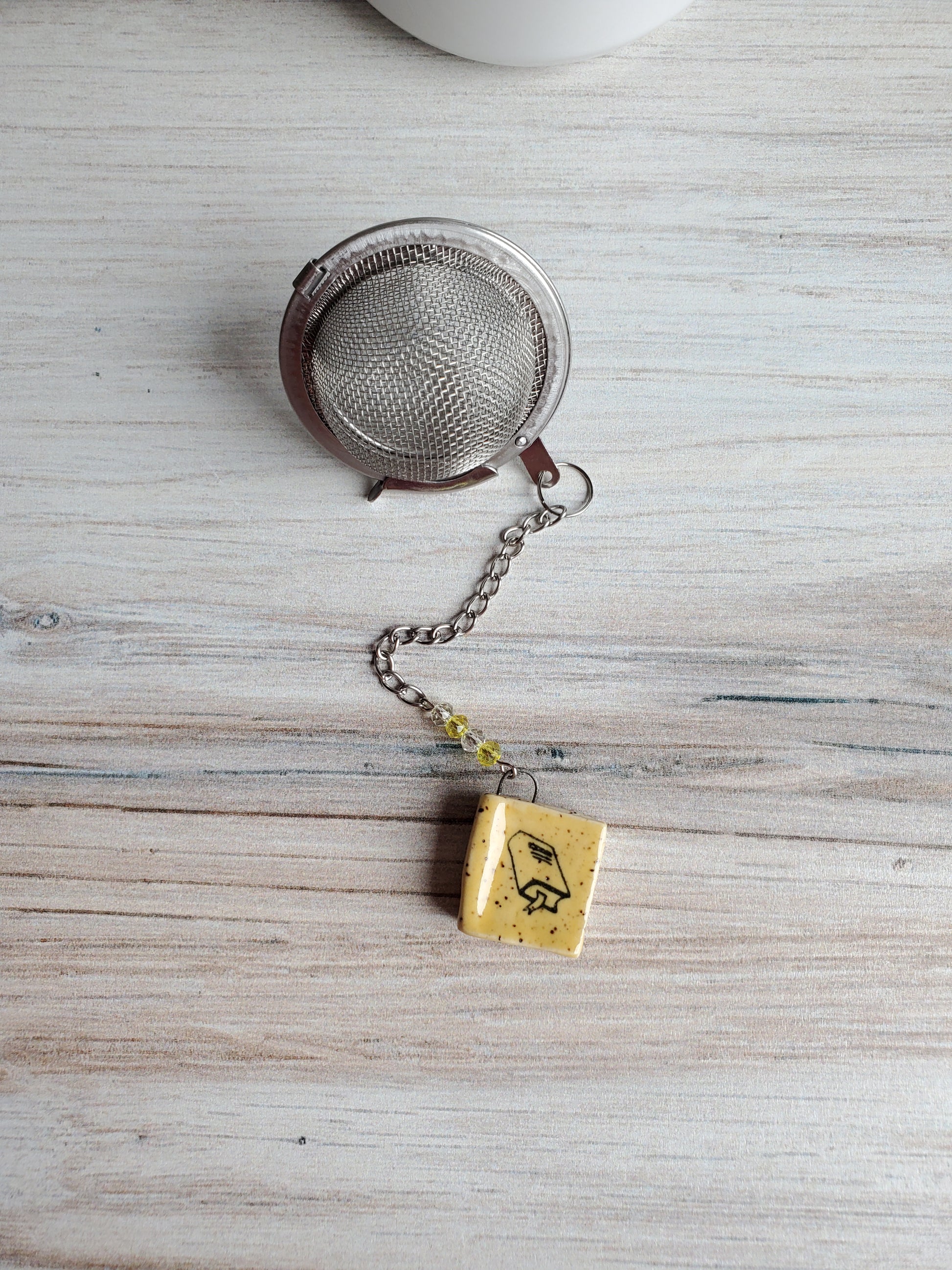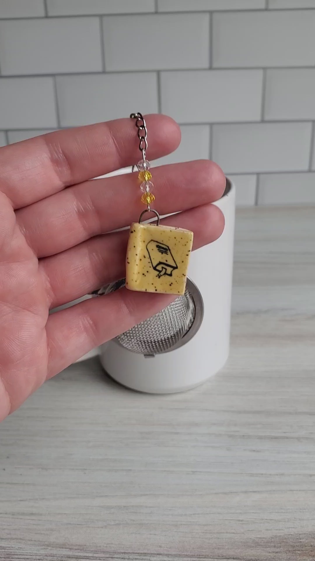 Book-Shaped Pottery Tea Infuser Charm with a book accent - a grounding gift for book and tea lovers alike. Elevate your tea ritual with one of our adorable tea infusers. Handmade pottery charms made from midfire speckled stoneware with an accent of colorful crystals, this infuser is sure to impress. So sit back, grab a book, relax, and enjoy your favorite loose-leaf tea.